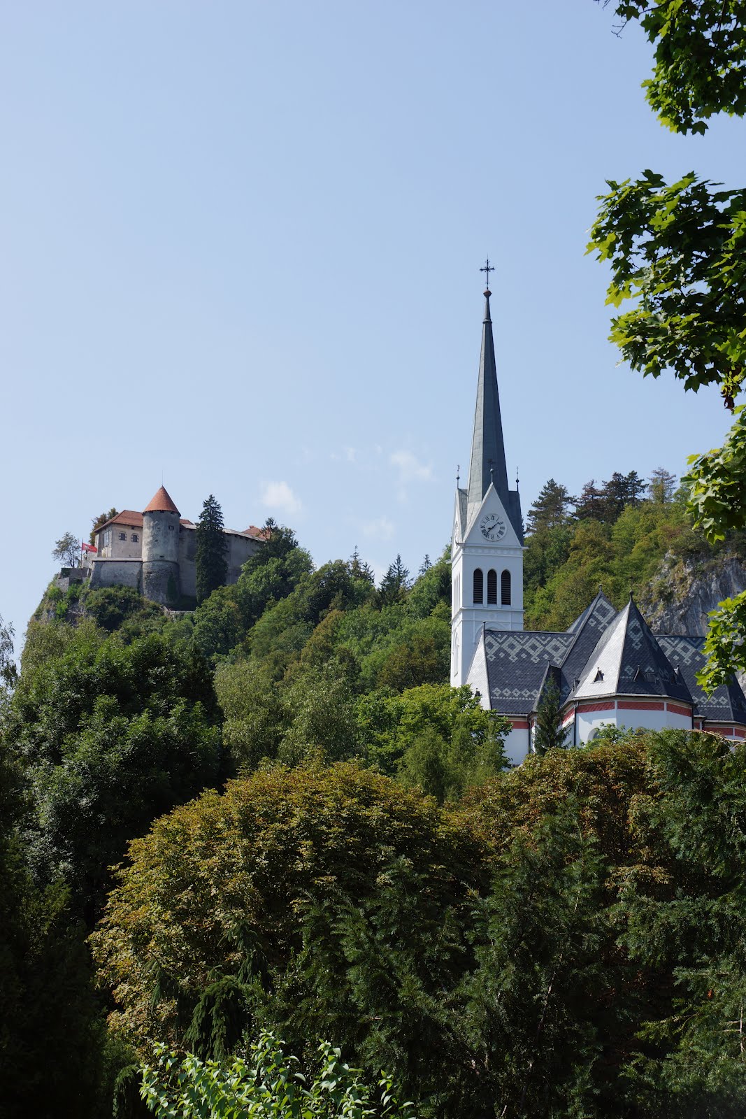 I walked up the hill to look for lunch. This is another photo of the castle with St Martin in the foreground. I went to the Brown Bear Pastry Shop to enjoy a chocolate cream roll.